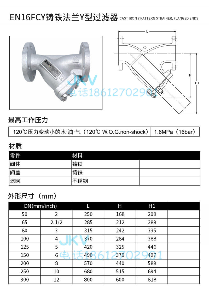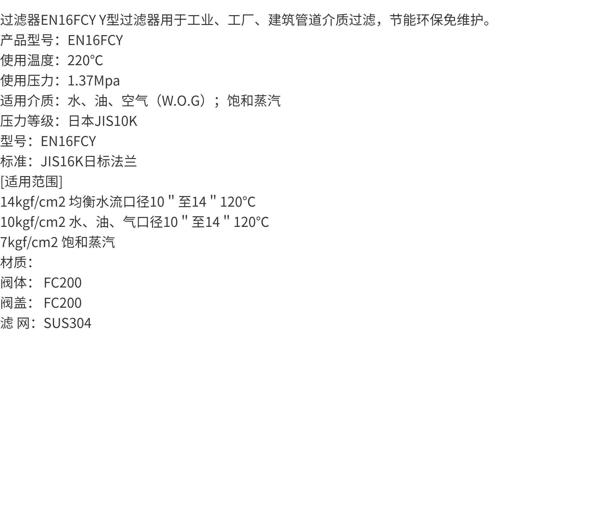 日本北泽KITZ法兰过滤器 EN16FCY 铸铁Y型水用过滤阀PN16 DN100